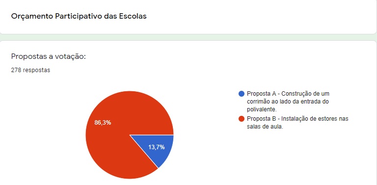 Comunica-se a toda a comunidade escolar que as propostas validadas pelo Órgão de Gestão, apoiadas por, pelo menos, 5% dos estudantes, foram:Proposta 1 - Construção de um corrimão ao lado da entrada do polivalente. (Turma 12º3)