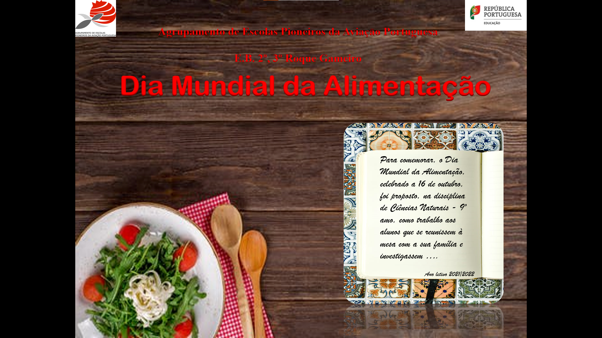 No dia 16 de outubro, celebrou-se o Dia Mundial da Alimentação, com o objetivo de comemorar este dia, no âmbito da disciplina de Ciências Naturais -9º ano as professoras propuseram aos alunos que se reunissem à mesa com os seus familiares e que elaborassem uma receita que "lhes aquecesse o coração", Assim surgiu este trabalho intitulado "Receitas que nos unem à mesa -Receitas que nos aquecem o " realizado pelos alunos do 9º ano com a colaboração dos seus familiares. O objetivo deste trabalho foi sensibilizar os alunos para os bons hábitos alimentares e para o não desperdício de alimentos. Vídeo