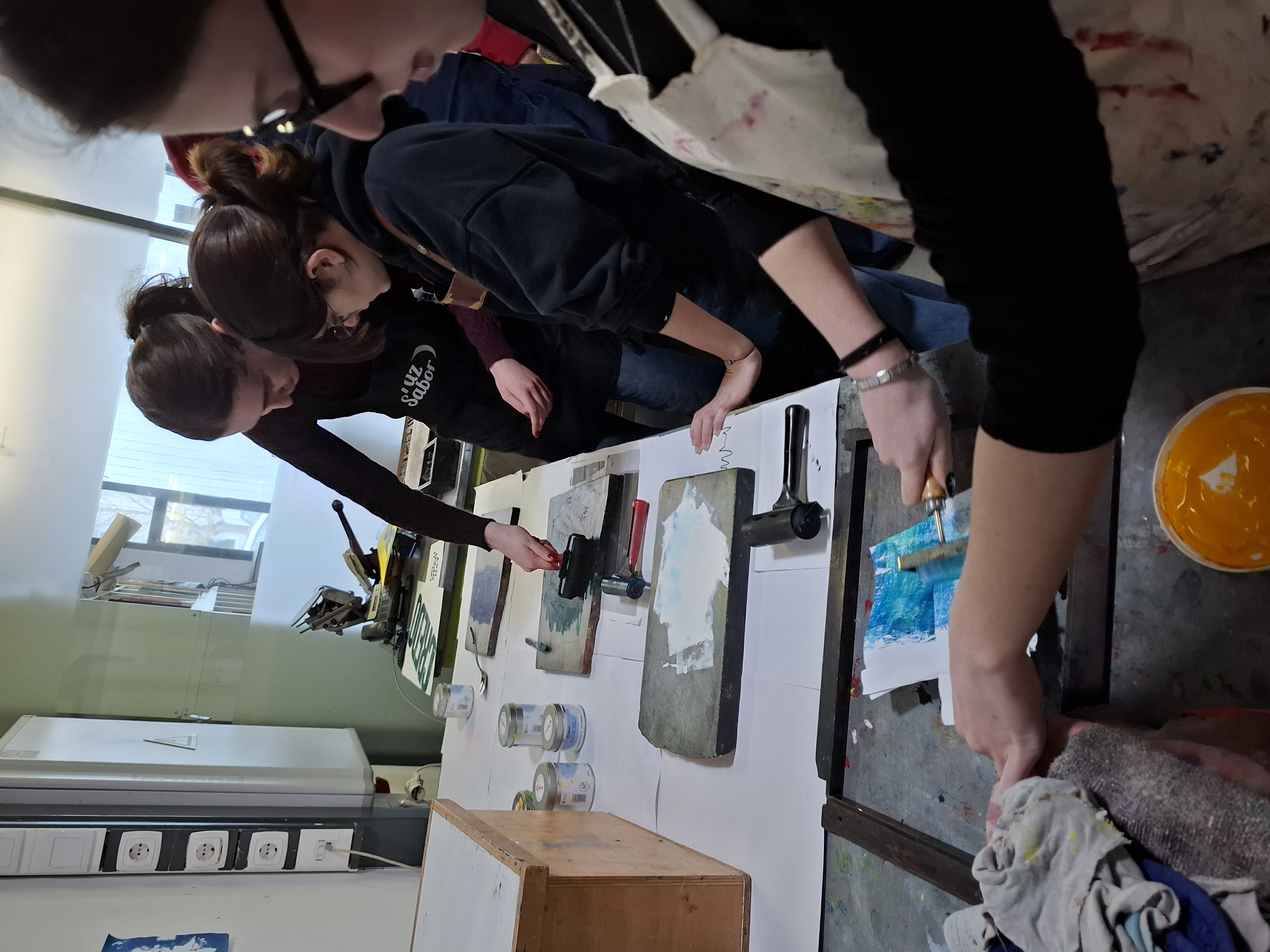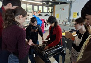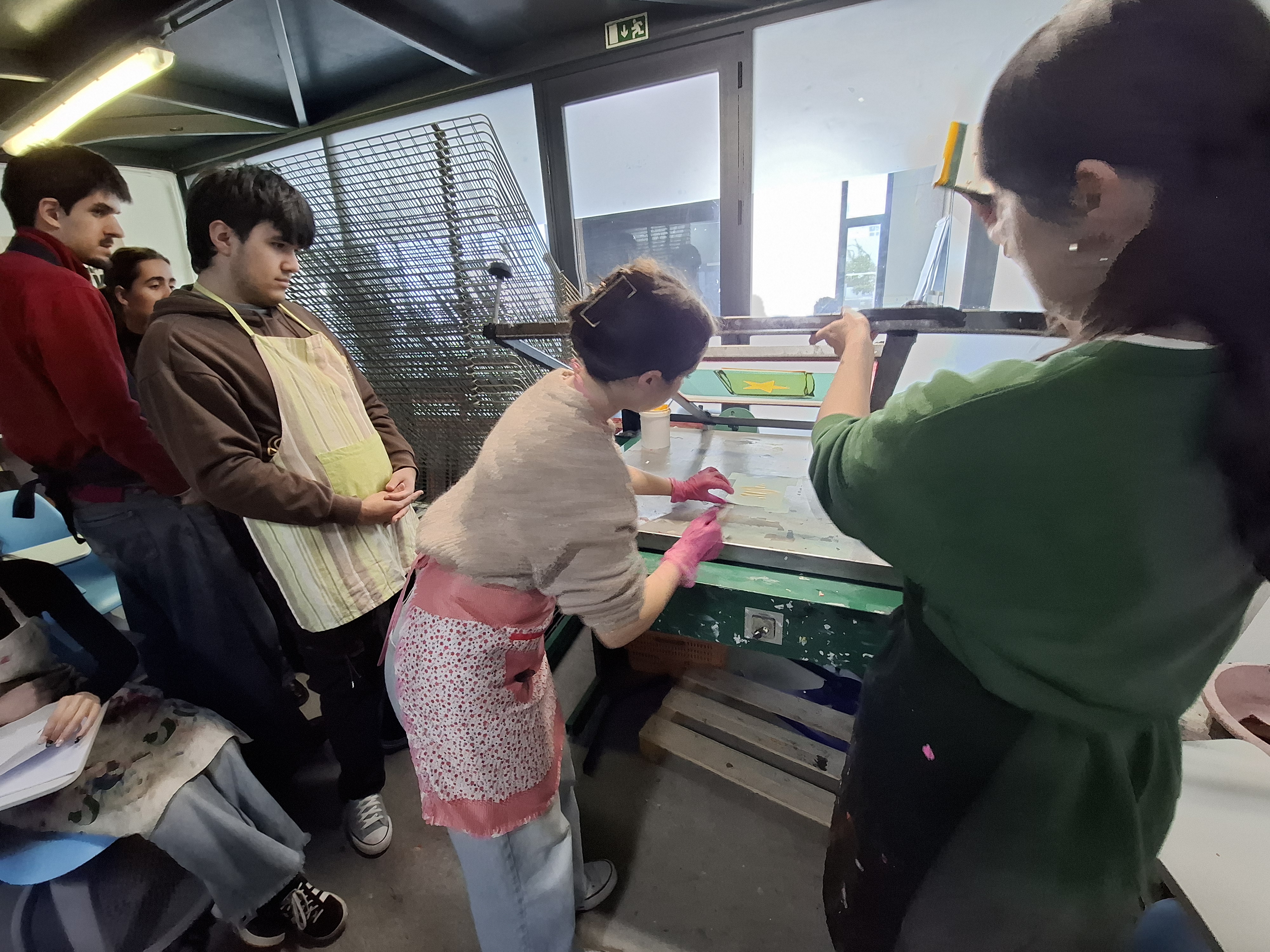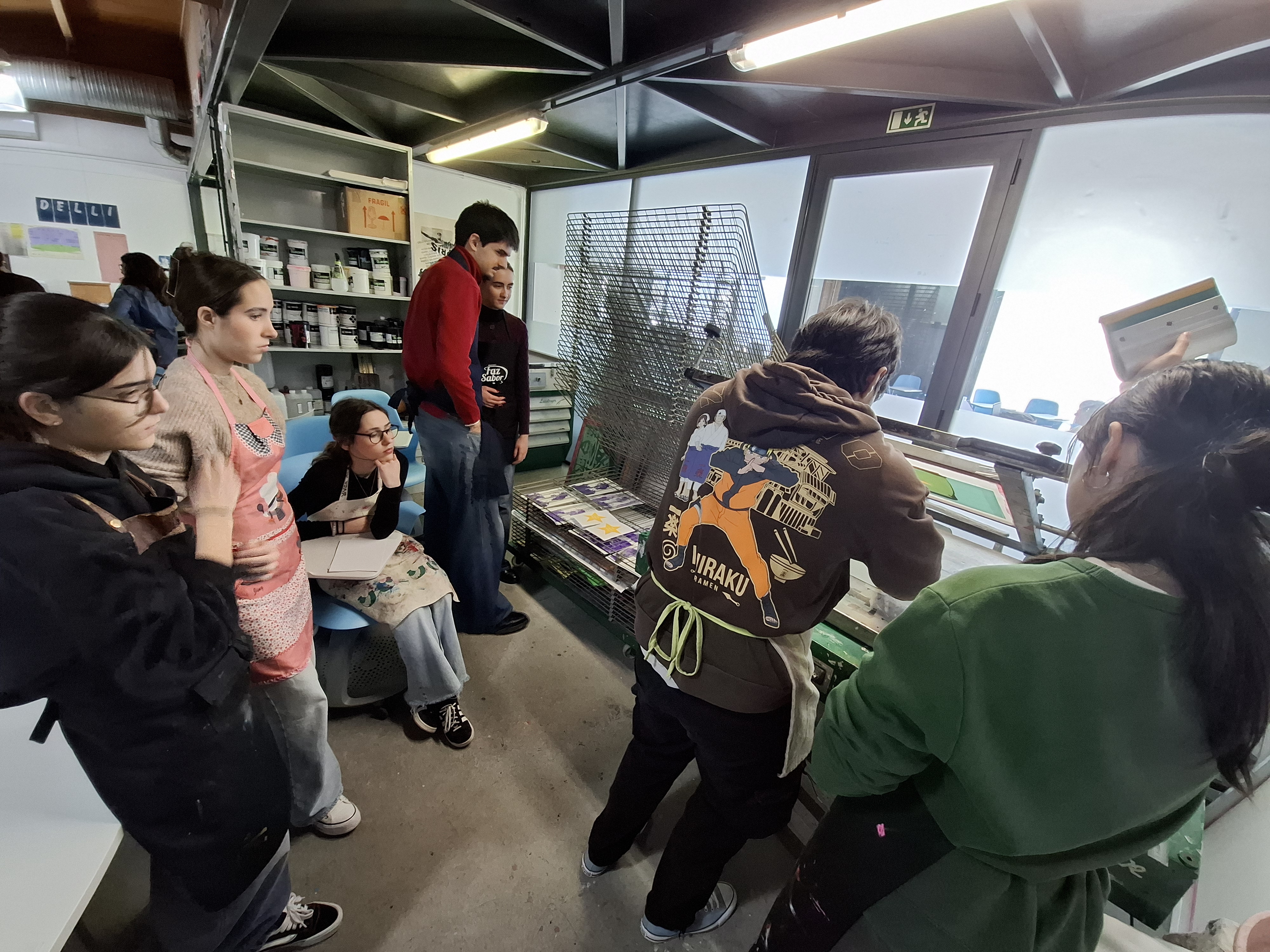 No dia 9 de março de 2026, a turma 12º12 do Curso Científico-Humanístico do Ramo de Artes Visuais 25/26, realizou um Workshop de Serigrafia e Letter Press nas instalações da Editora Delli Press da Universidade Lusófona de Lisboa, no âmbito da disciplina de Oficina de Artes. Com o intuito de proporcionar o contato direto com práticas de impressão artesanais aplicadas à Ilustração e ao Design de Comunicação Contemporâneo, os alunos experienciaram a materialidade da Impressão Tipográfica (letter press) compondo e imprimindo com tipos móveis, assim como acompanharam o processo de gravação em Serigrafia, uma técnica apreciada por artistas contemporâneos pela sua aplicabilidade e versatilidade. Esta experiência proporcionou aos alunos a oportunidade de unir a teoria à prática, num contexto de oficina e ambiente editorial, aliado a um despertar para processos criativos alternativos na área das Artes Visuais, enriquecendo a sua aprendizagem e literacia visual que lhes permitirá transformar esse conhecimento em trabalhos e projetos com cariz mais pessoal e artístico, mesmo numa era tão digital como a que vivenciamos.